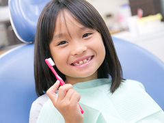 フッ素を定期的に歯の表面に塗布する事で、むし歯になりにくい歯を育てていきます。